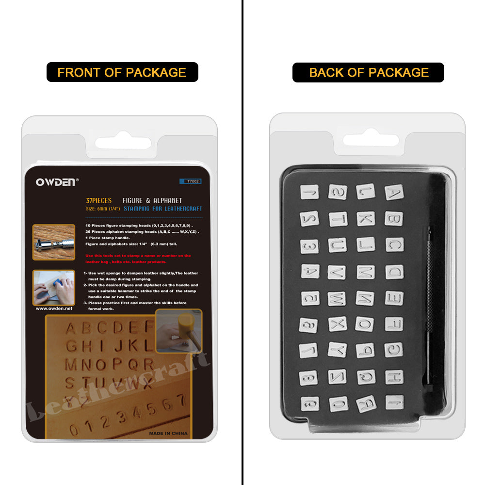 OWDENs professionelles 37-teiliges Zahlen- und Buchstabenstempelset aus Leder mit sauberen, scharfen Kanten. Dieses Stempelset eignet sich für handgefertigte Lederwaren mit gestempelten Namen, Geburtstagen, Grüßen und wichtigen Jubiläen.