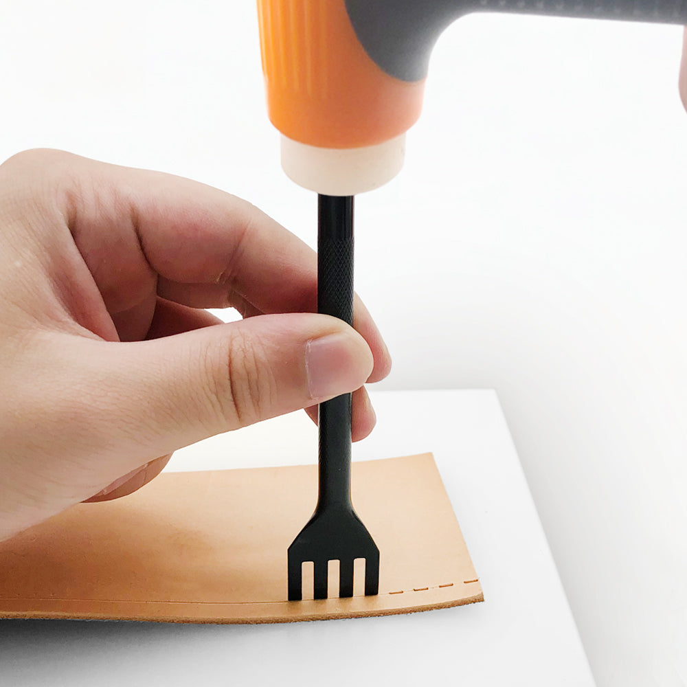 - To extend the service life of the French-style chisel, we don't recommend punching more than 3mm thick leather directly. When you punch more than 3mm thick leather, please punch separately with an obverse and reverse direction.