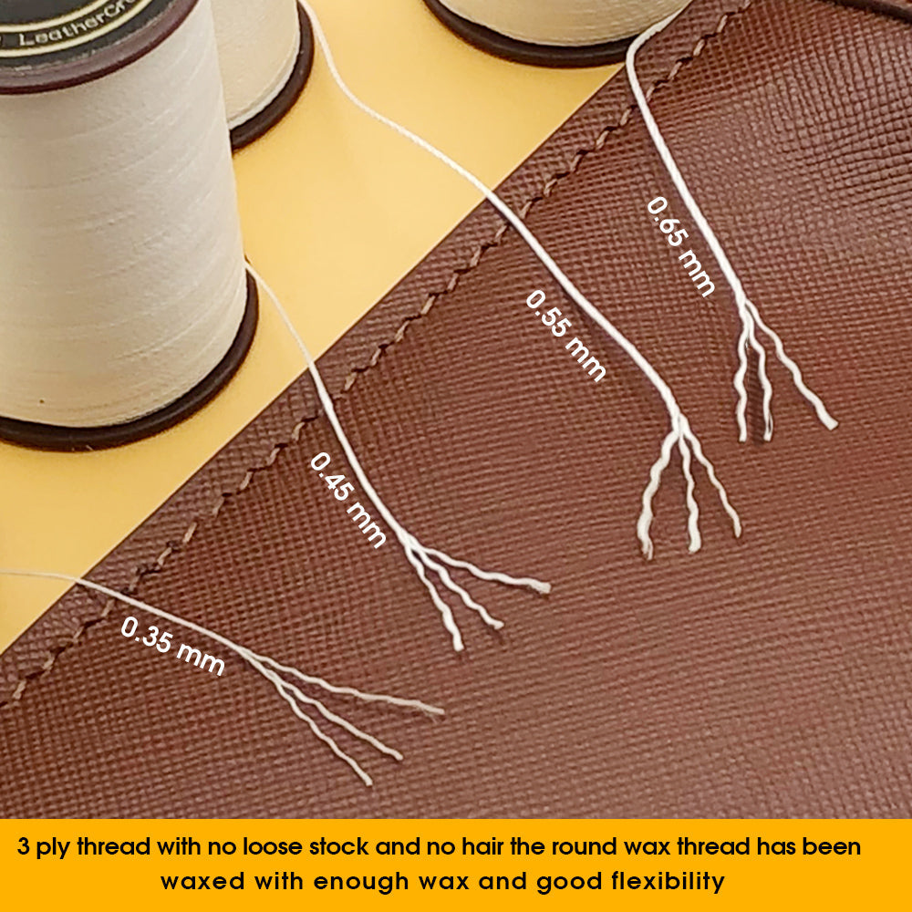 - 3ply thread with no loose stock and no hair the round wax thread has been waxed with enough wax and good flexible.