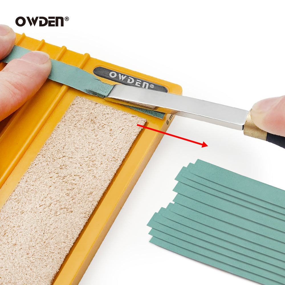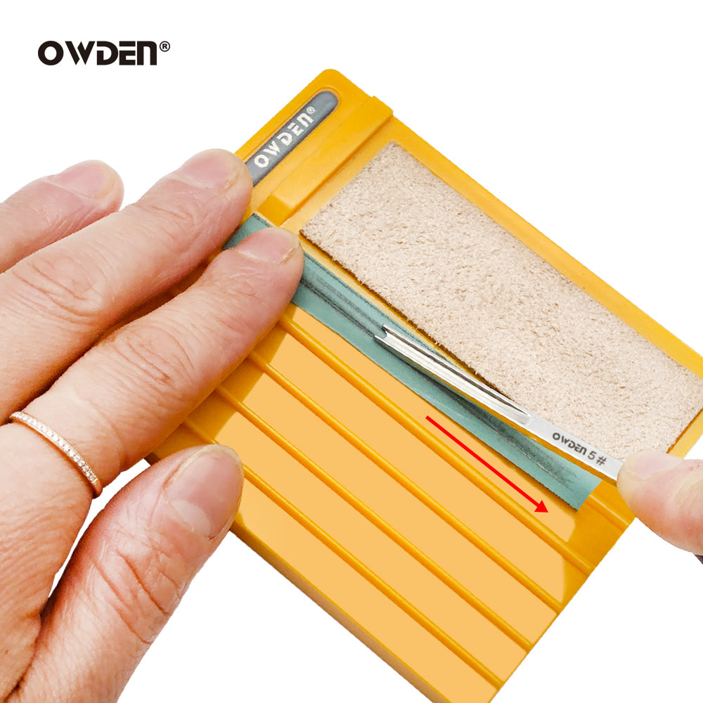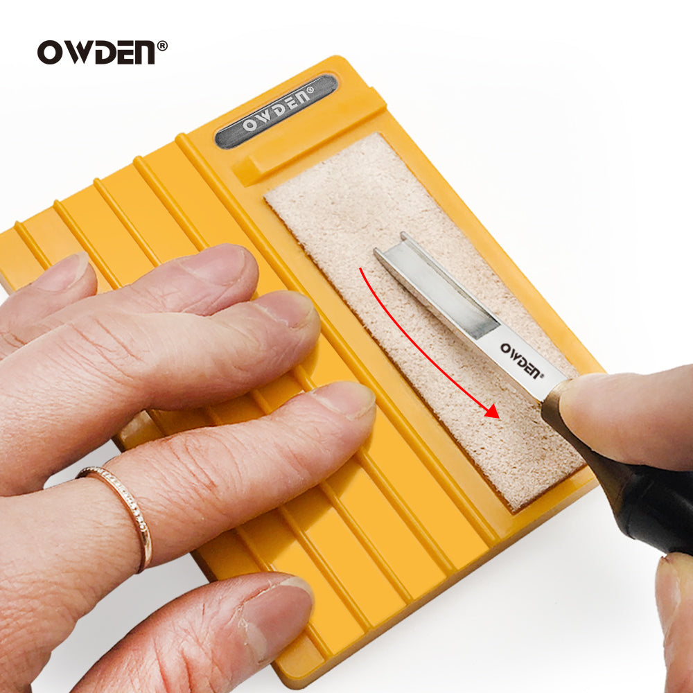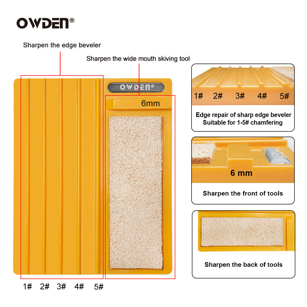 OWDEN sharpening repair plate is made of high-quality plastic material. It can be used for a long time. This multi-functional double-sided polishing and sharpening repair tool is designed for beginners and professional carvers to hone and keep OWDEN Edge Bevelers 1-5# and Wide Mouth Edger - 6mm razor-sharp. It is the ideal accessory for keeping flat or rounded bevelers perfectly sharp to extend their working life.