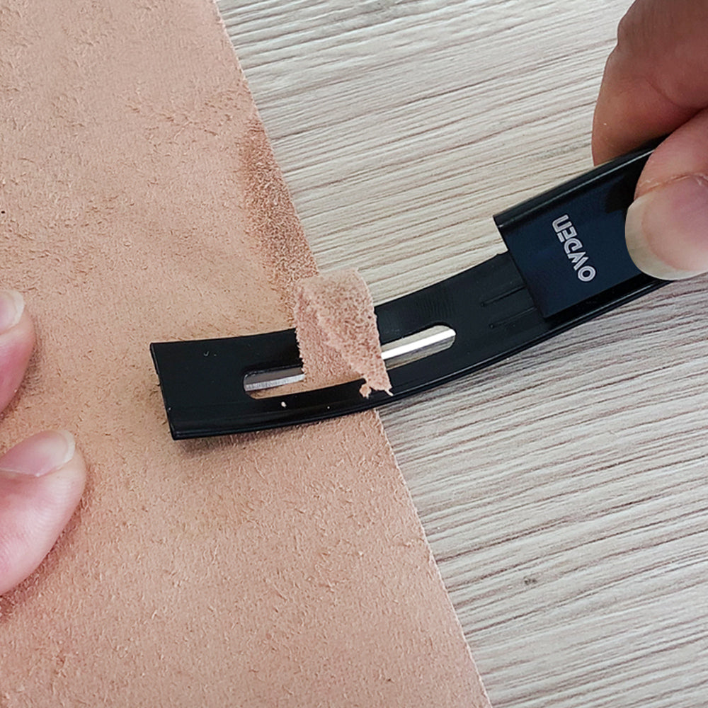 - 革を深く切り込みすぎず、革を削りやすい形状です。安全かつ正確に革紐を接合することができます。
