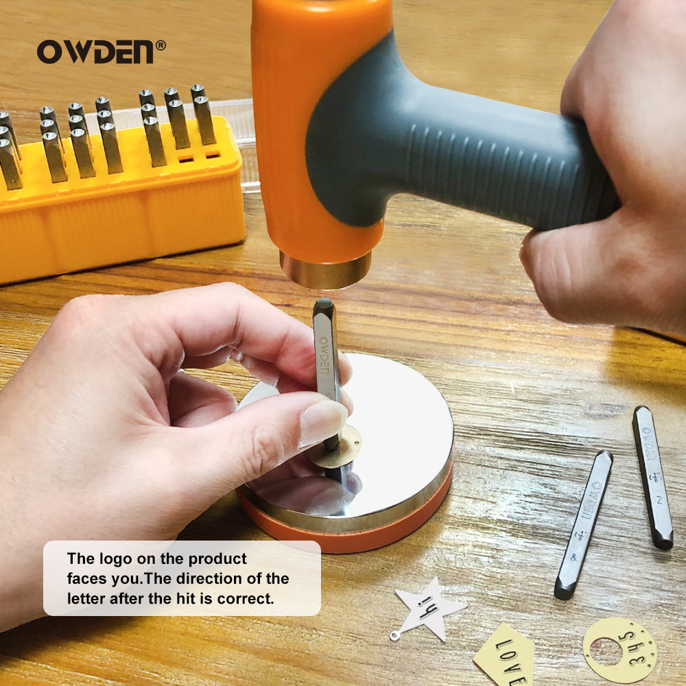 - OWDEN round steel bench block designed for jewelry & stamping work, The steel part is mirror-finished and chrome plated. (No rebound design),The base is made of soft plastic and wraps the bottom of the steel part. The soft bottom helps reduce the rebound force when tapping. It will make the patterns or letters that we work more perfect.