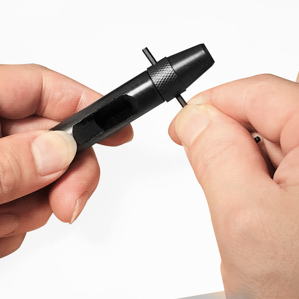- Owden 6-in-1 silver and black replaceable leather hole punch set. The tool has a replaceable punch pin to better change the size that you want.