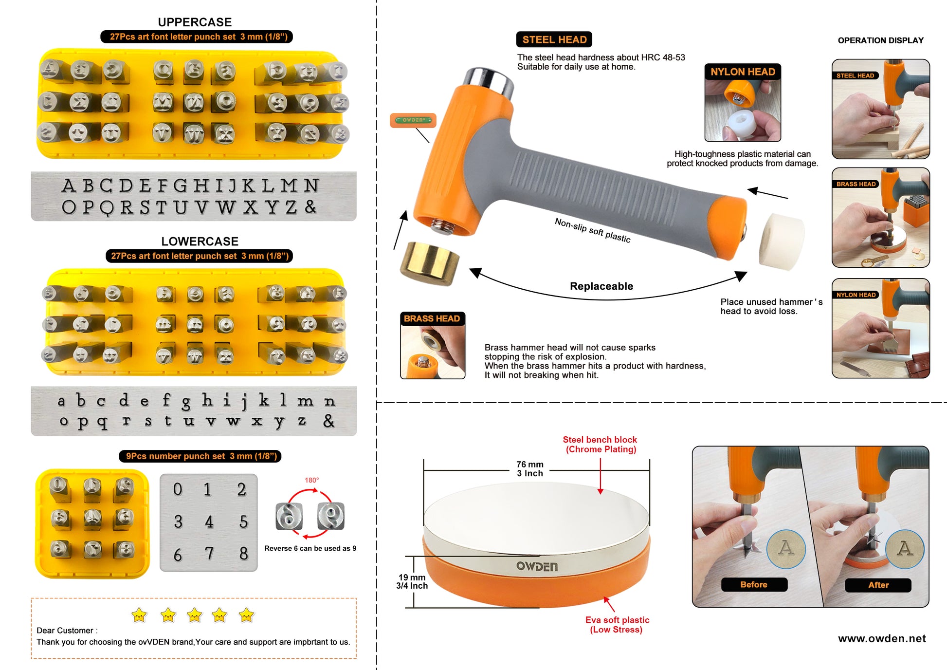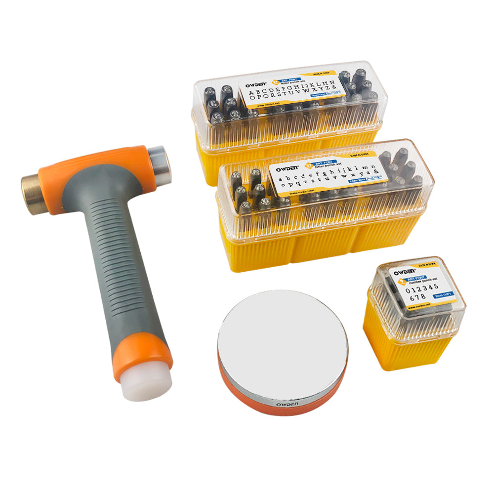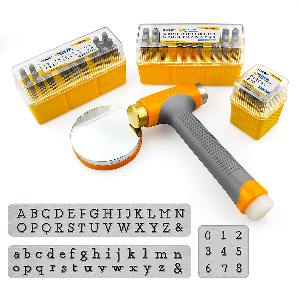 This 65pcs metal stamps kit includes all of OWDEN's essential tools for hand-stamping metal jewelry and keepsakes. The metal stamp, hammer and bench block have all been specifically selected to ensure an easy and successful user experience. These metal stamps are made of CR-V steel to withstand stamping on soft and hard metals (up to stainless steel). They're labeled for easy identification and location and come in a storage box with label slots to keep them organized and within easy reach. The kit also includes a convenient storage box to store all your hand-stamping tools and supplies.